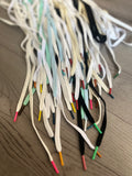 Stap in de wereld van zelfexpressie en personalisatie met onze premium, op maat gemaakte veelkleurige nestels! Het gaat ons erom een uniek tintje aan uw schoenen toe te voegen. Met een breed scala aan levendige veterkleuren, veel verschillende lengtes en kleurmatchgarantie, zorgen onze op maat gemaakte gekleurde veters voor een finishing touch voor elk van je geliefde paar sneakers!